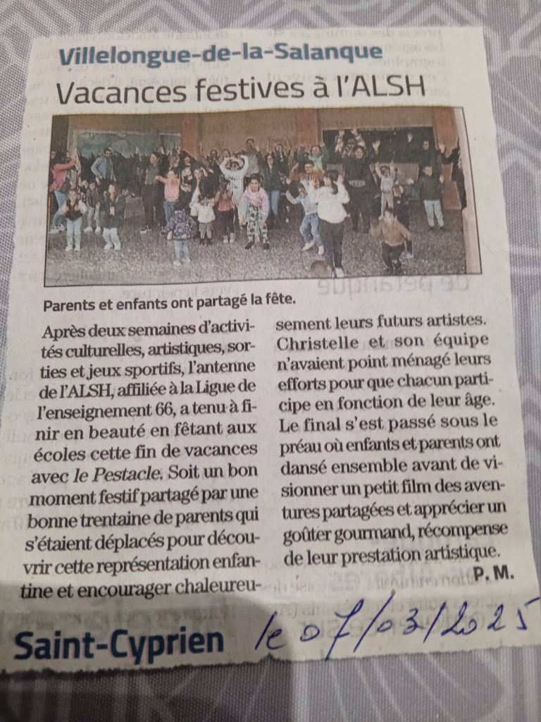 Le premier article a paru fin décembre : journée festive ou les enfants ont eu un repas de fête confectionné avec soin. Le deuxième article a paru le 24 février suite à la première semaine « très active de l’accueil de loisirs » : sortie neige, carnaval et grand jeu. Le troisième article a paru le 7 mars pour la deuxième semaine des vacances d’hiver : sortie nature, « pestacle » avec invitation aux familles et partage d’un gouter convivial.