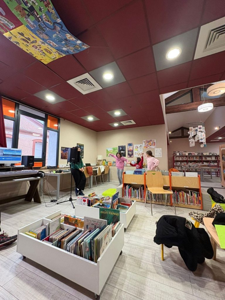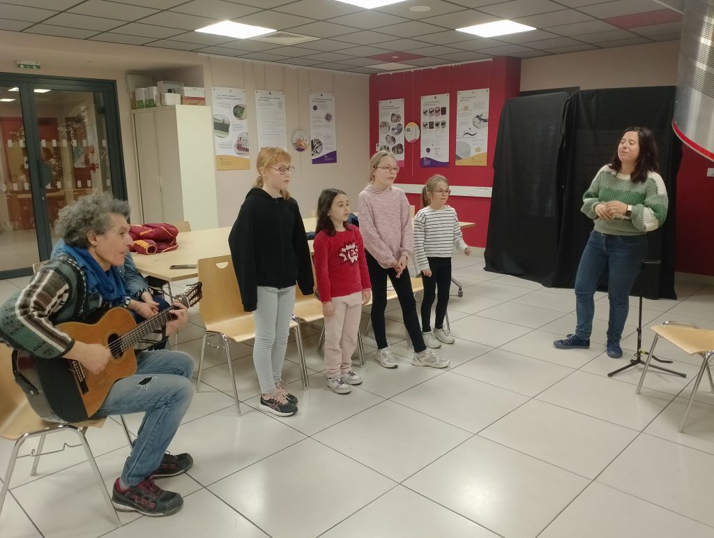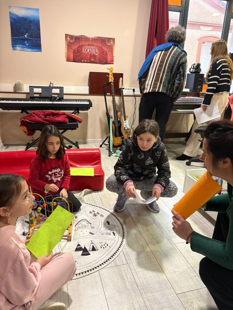 Les enfants de l’ALSH ont plongé dans l’univers de la création musicale lors d’un atelier pédagogique « Création d’une chanson » animé par la compagnie « Du désert à la prairie ».