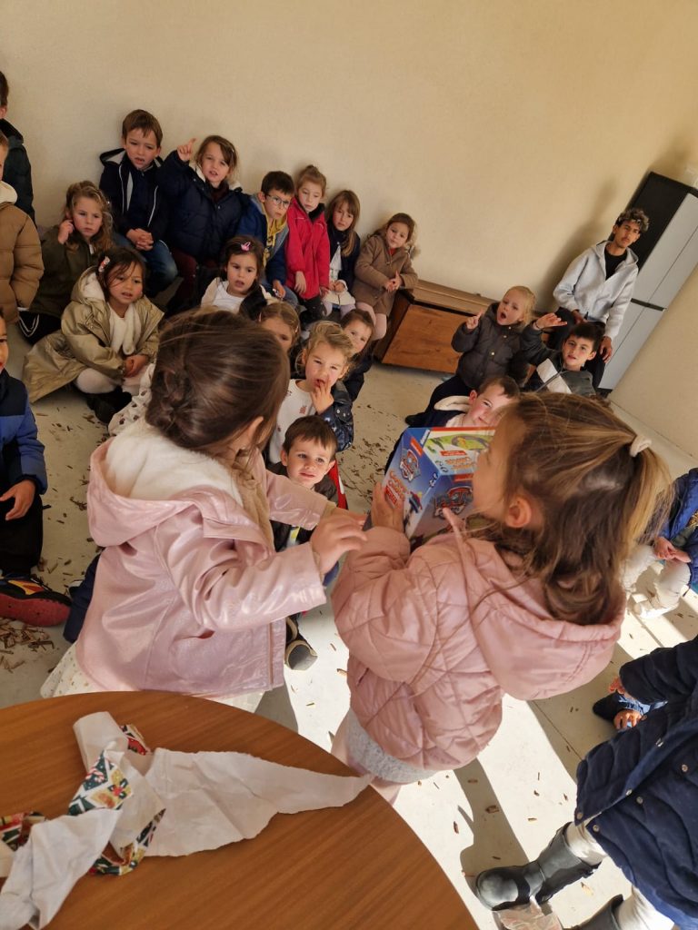 Sur la pause méridienne, le père Noël a confié a l’animatrice les cadeaux de noël qu’il ne pourra pas déposer sur l’école maternelle. De fait, les enfants ont eu la chance d’avoir à ouvrir plusieurs cadeaux et d’avoir des chocolats. retour en images.