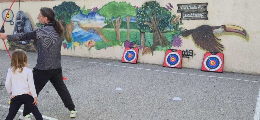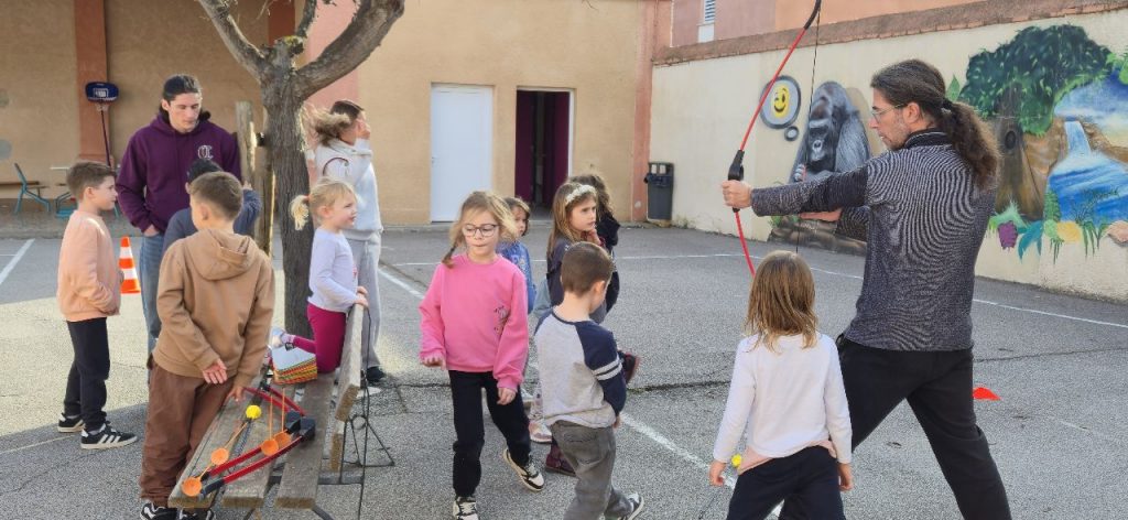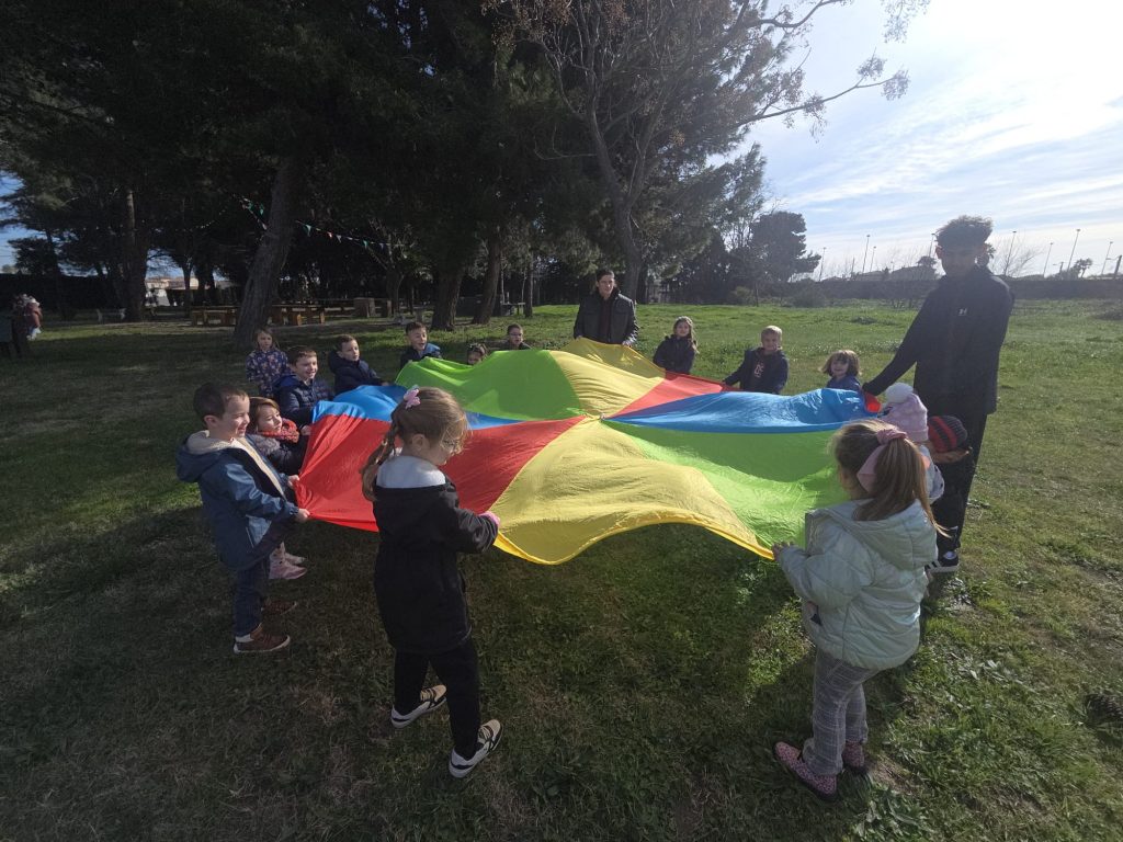 Ce mercredi, le temps étant au beau fixe, pas de vent et un grand soleil, les enfants ont donc passé la journée dehors. Au programme, grand jeu au parc Saint-Antoine avec du land’art et le jeu du parachute. Pour l’après-midi, activités sportives multisport : Thèque, badminton, Tir a l’arc et confection du gouter : marbré au chocolat.