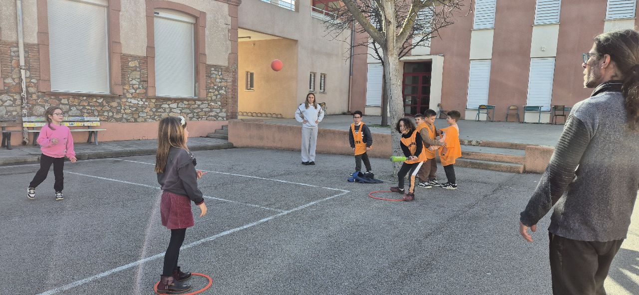 Ce mercredi, le temps étant au beau fixe, pas de vent et un grand soleil, les enfants ont donc passé la journée dehors. Au programme, grand jeu au parc Saint-Antoine avec du land’art et le jeu du parachute. Pour l’après-midi, activités sportives multisport : Thèque, badminton, Tir a l’arc et confection du gouter : marbré au chocolat.