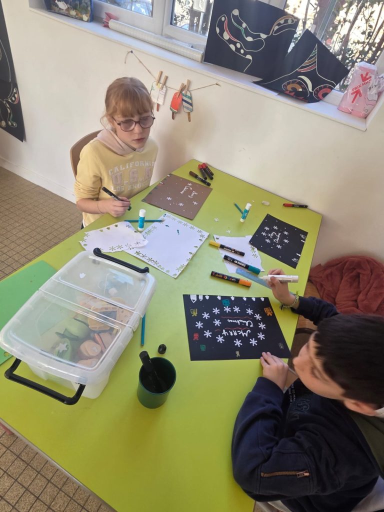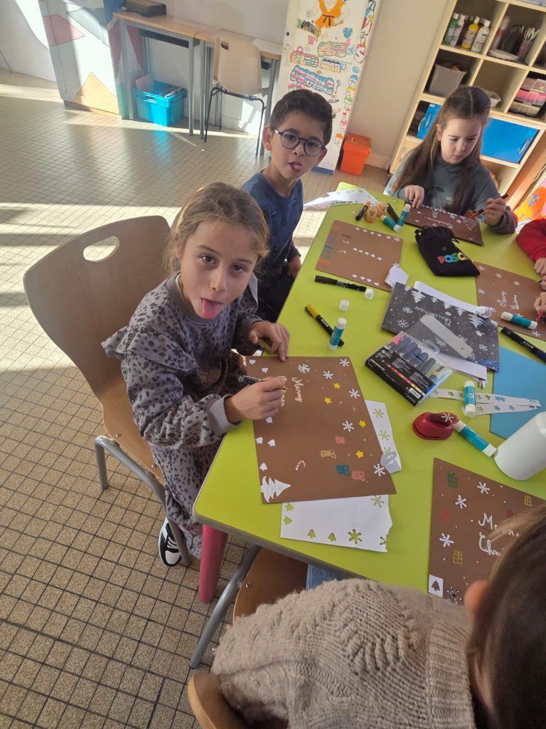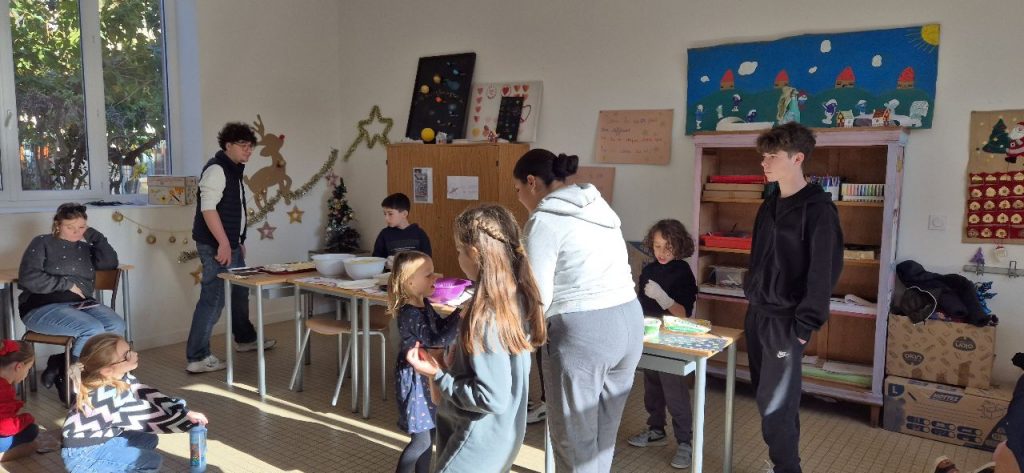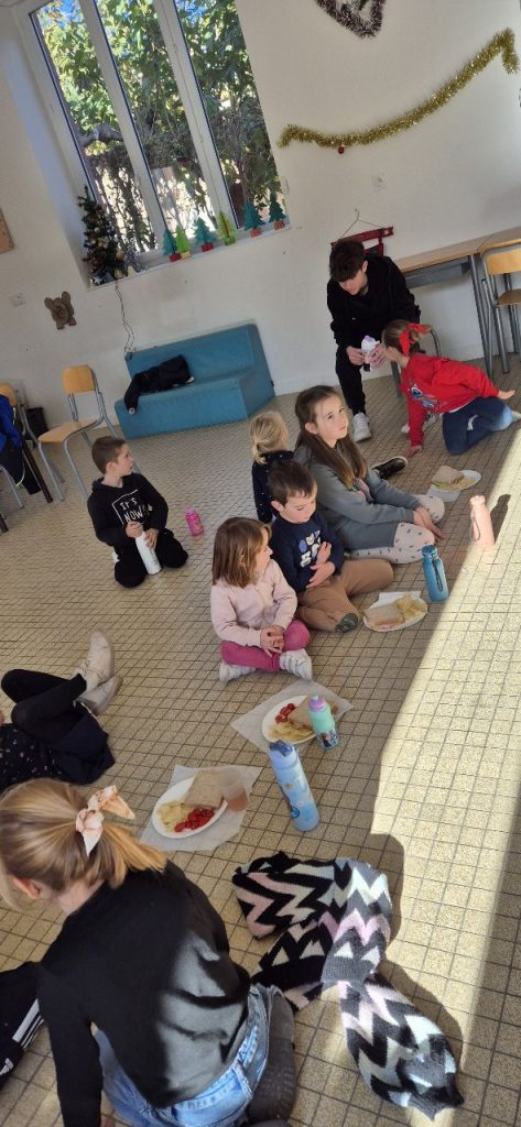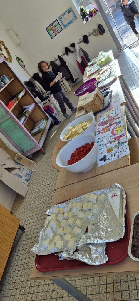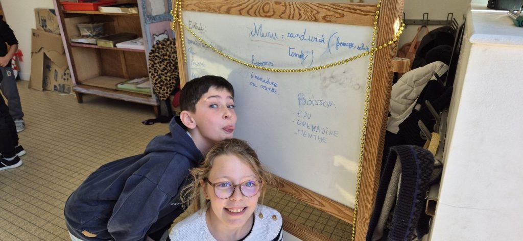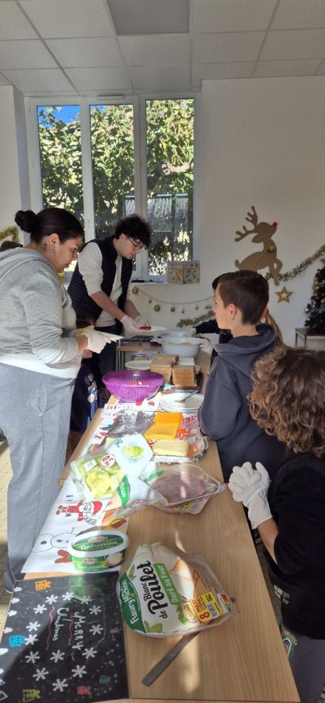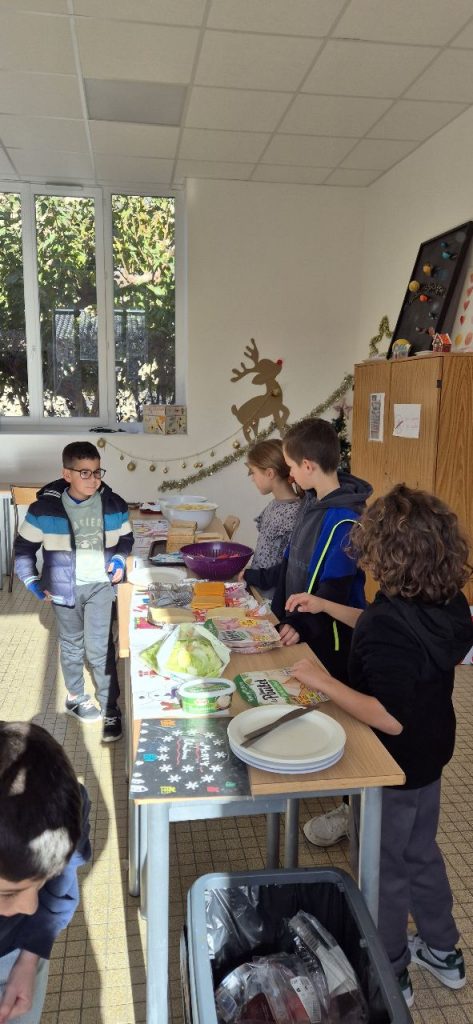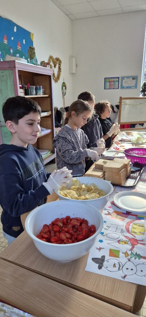 Ce mercredi , les enfants ont fait la décoration pour le repas autonome. Celui-ci à été basé sur des sandwichs, chips, tomates cerises, fromages et brownies. Les enfants ont préparés les sets de tables. Certains, Ont fait les serveurs, car le repas s’est déroulé en mode self et ensuite « a la bonne franquette ». Retour en image.