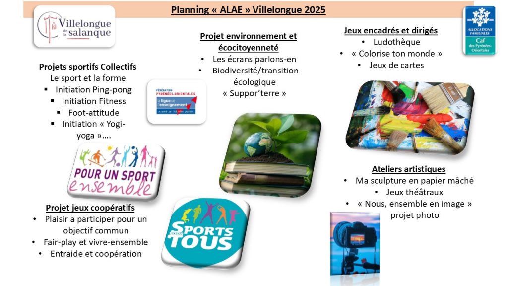 Programme ALAE de Novembre-Décembre Par alsh.villelonguesalanque17 octobre 2025Villelongue-de-la-Salanque Le premier programme est a destination du public élémentaire. le second est à destination du public maternelle.