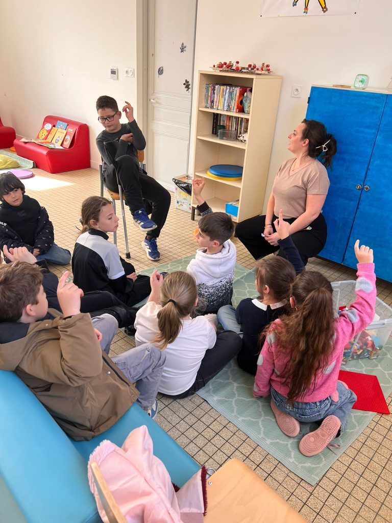 Tous les jeudis, sur l’alae, Clarisse vient pour que les enfants puissent exprimer leurs émotions…. Un temps de parole et d’échange qui permet de sensibiliser les enfants au bien-vivre ensemble et à la bienveillance. Afin que chaque enfant assimile et comprenne les concepts, ils passent par divers ateliers et valident une carte de réussite. Cela permet de valoriser l’enfant et la confiance en soi.