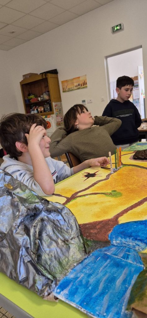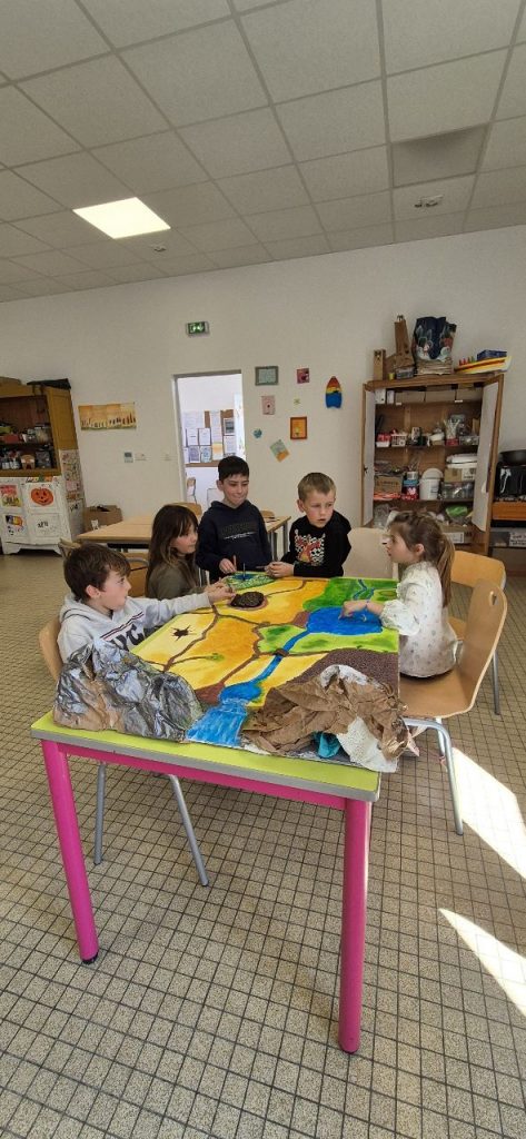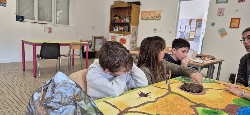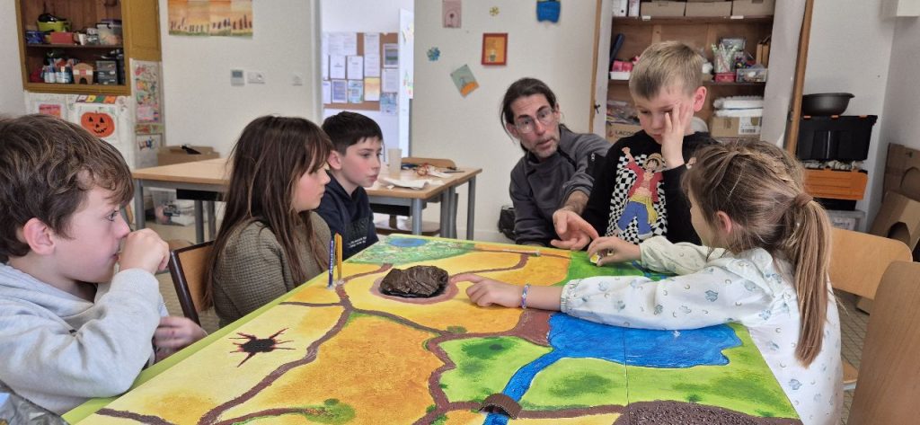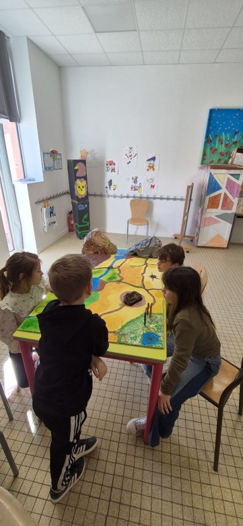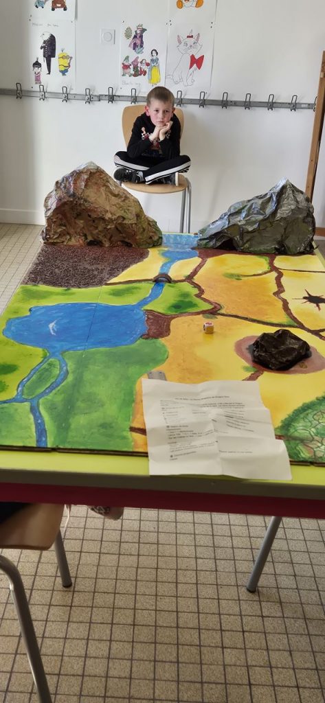Depuis plusieurs mercredis, les enfants avec François, réalise un jeu de plateau a visé jeu de rôle. Ici les enfants peuvent tout imaginer, peuvent être à la fois un guerrier, un magicien, une soigneuse, un archer…. Dans le jeu de rôle, il y a plusieurs possibilités de jeu : soit vivre son histoire seul, soit à plusieurs ou petit groupes selon le chemin qui se propose aux joueurs. L’imagination n’a pas de limites, les défis s’enchaînent et la dynamique de groupe se fait plus forte au fur et à mesure des choix fait par les joueurs. De plus, ce jeu de rôle est en perpétuel évolution et le meneur de jeu à un rôle capital.