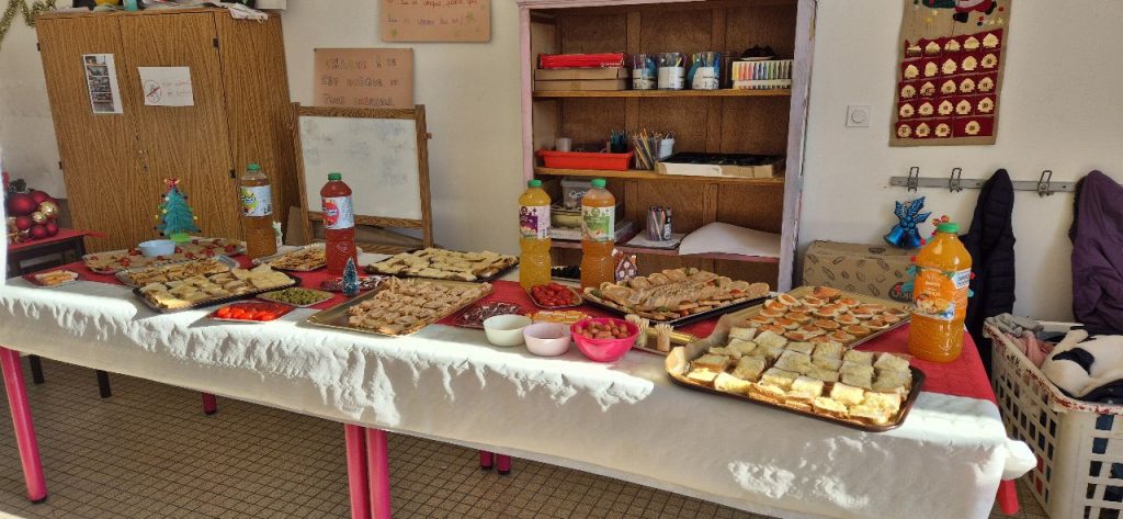 Ce mercredi 17 décembre, les enfants et les animateurs-trices ont mis les petits plats dans les grands. En effet, dernier jour de l’année ensemble, un repas de fêtes est de rigueur. grand buffet avec une multitude de mets, tous aussi bons les uns que les autres. Merci aux enfants et à l’équipe d’animation pour cette belle année qui se termine « tous ensembles »…