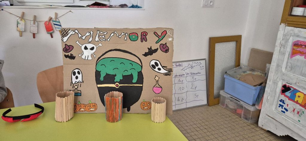 Le jeudi 30 octobre, les enfants ont invité les familles a participé a un concours de déguisement ou un jury notera les meilleurs costumes : catégorie parents, catégorie enfants et catégorie animateur-trice. De même, les animateurs ont préparé un labyrinthe de la peur. Qui osera y aller …. Les enfants ont également préparé une kermesse afin que tous le monde puisse s’amuser et un gouter partager.